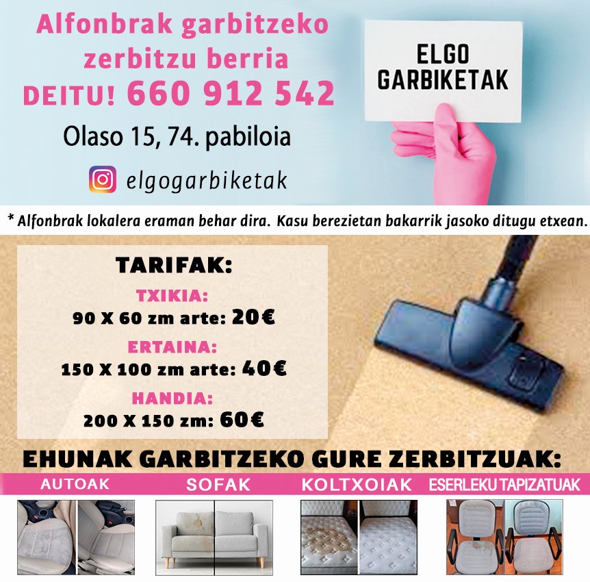 📍 Recogida y entrega disponibles en Elgoibar, Eibar, Ermua, Durango, Azkoitia, Azpeitia, Soraluze y alrededores.